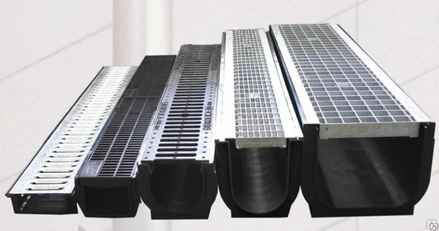 - Дренажная решетка. Она принимает на себя основную механическую и визуальную нагрузку. Её класс нагрузки должен строго соответствовать классу лотка. Материал решетки (пластик, оцинкованная сталь, нержавейка, чугун) выбирается исходя из эстетических предпочтений, требований к прочности и условий эксплуатации (например, стойкости к противогололедным реагентам).